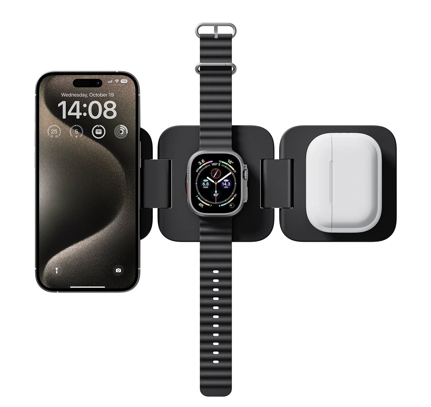 Fini les prises introuvables et les batteries à plat : vous rechargez votre iPhone, Apple Watch et AirPods en un seul geste, où que vous soyez.